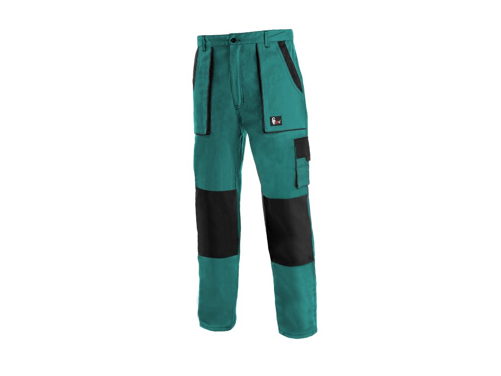 Pánske montérkové nohavicedo pása, zdvojené kolená, pevný pás vzadu na gumu s pútkami na opasok, predné vakové vrecká, bočné vrecká na meter a na mobil.